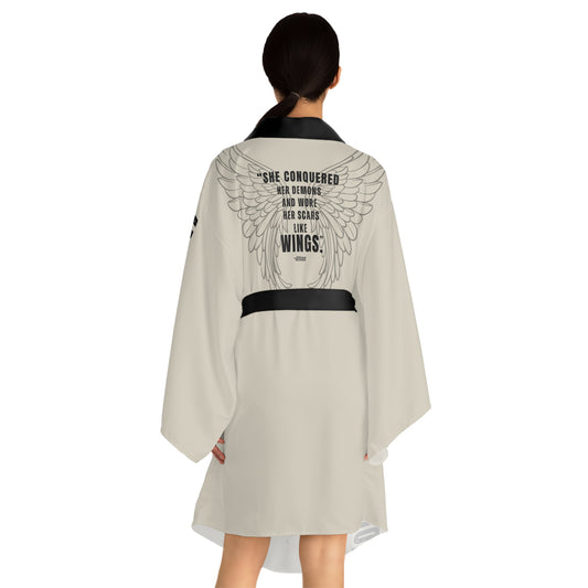 SHE She Conquered Kimono Robe – Empowering Long Sleeve Statement Kimono with Belt
