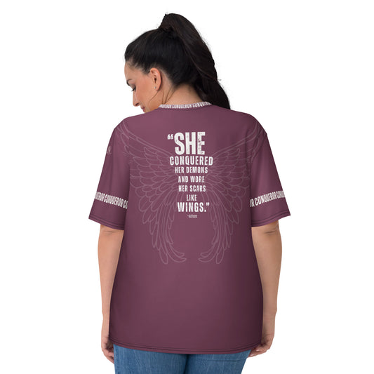 She Conquered Women’s Empowerment Tee – Inspirational Quote Shirt