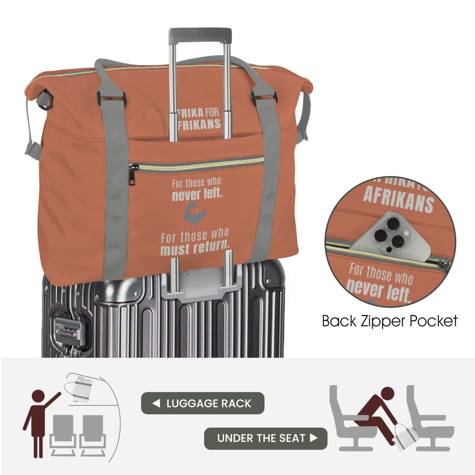 Featuring the statement “Afrika for Afrikans” and an Africa map graphic, this duffle is a declaration of identity, connection, and return. Designed for those who never left — and for those who must return.
