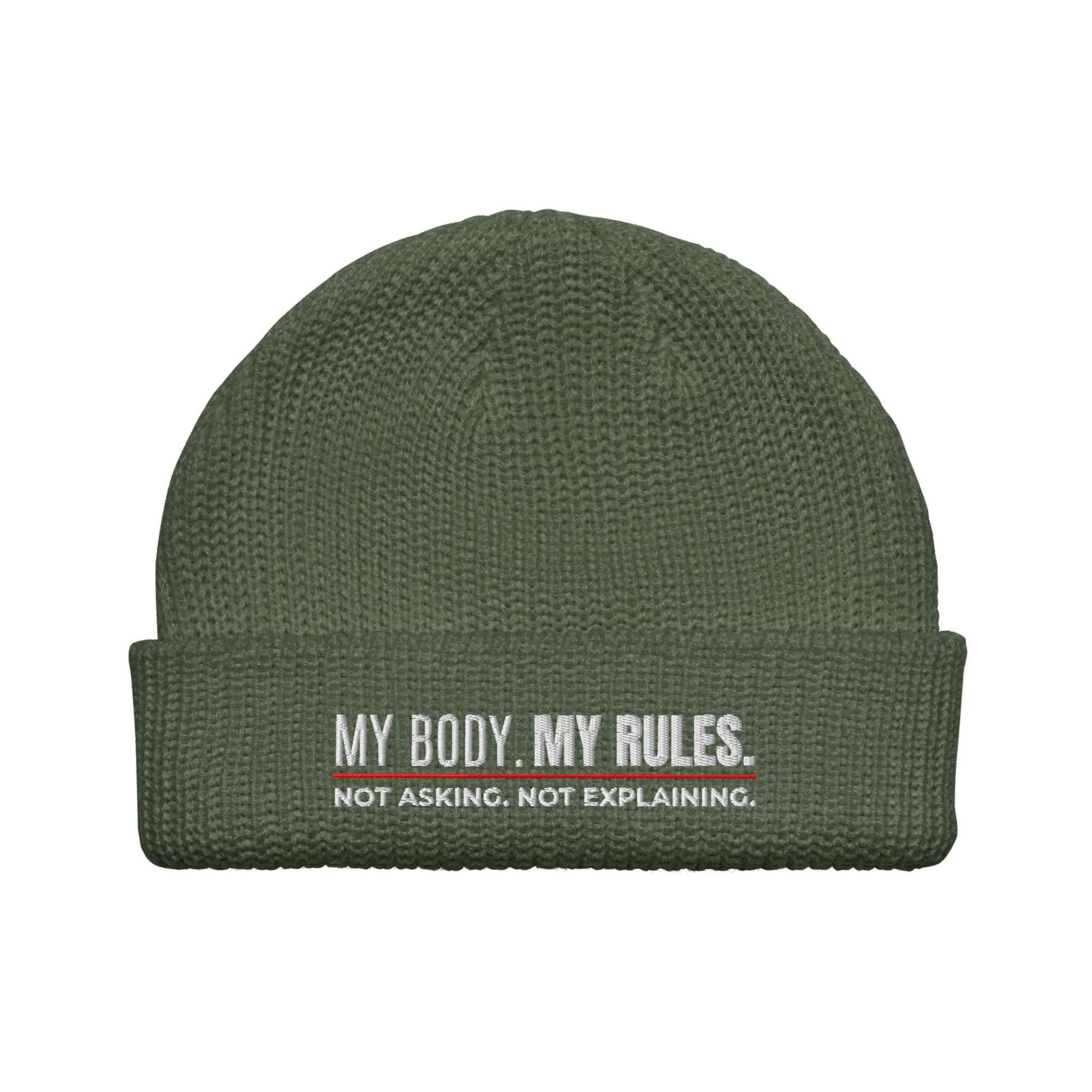 My Body My Rules Beanie – Fisherman Style Ribbed Knit Hat | Unisex Winter Accessory