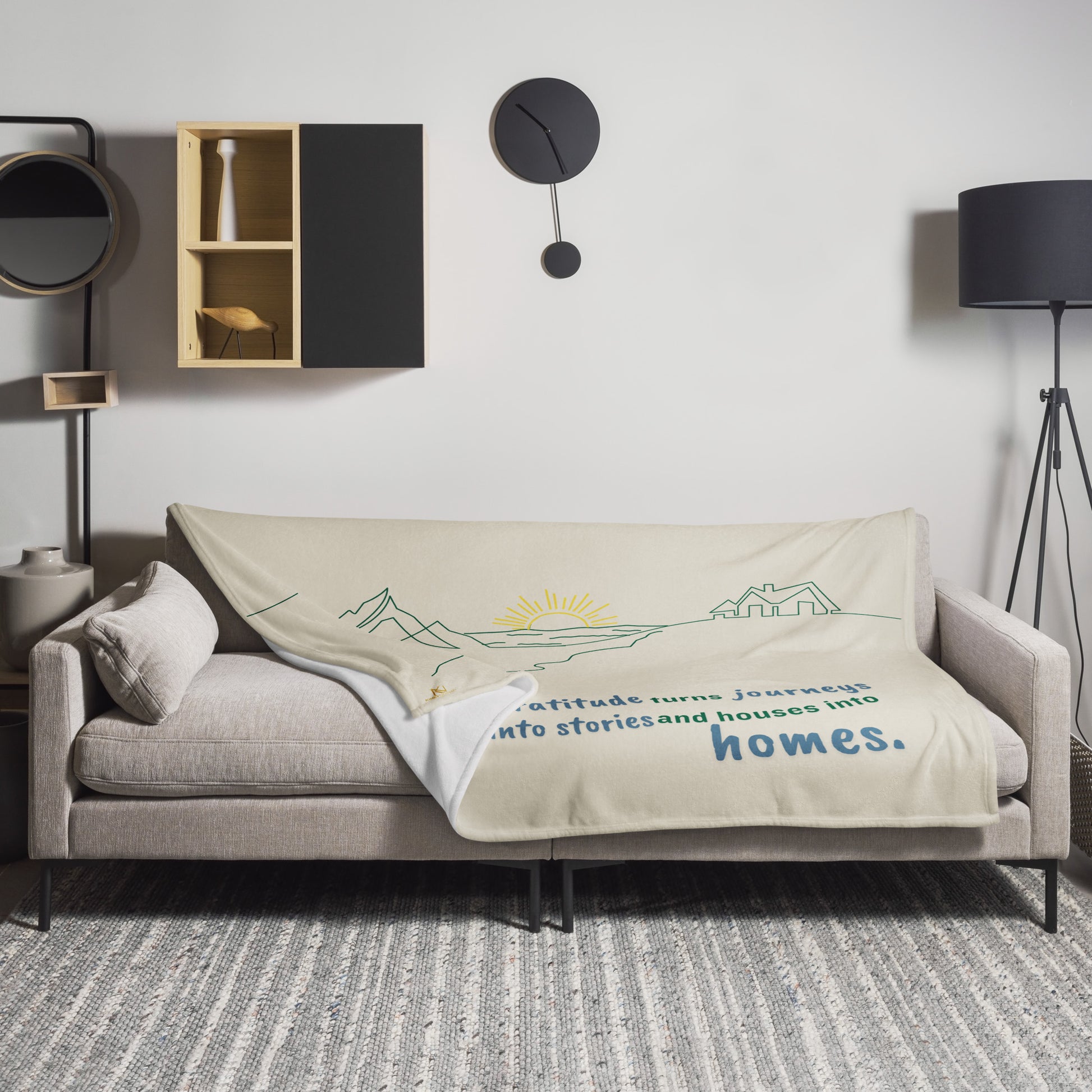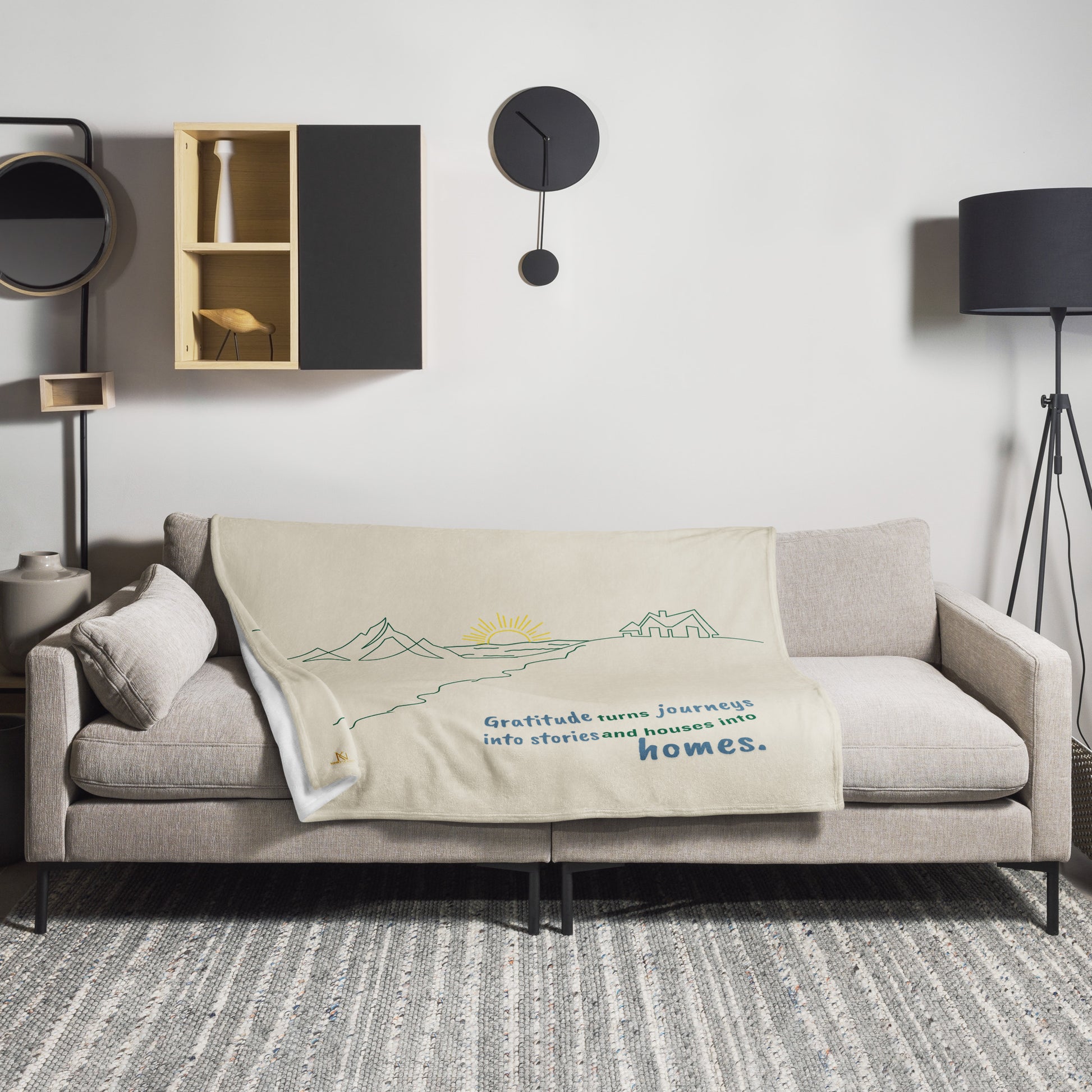 Wrap yourself in warmth and meaning with the “Gratitude” Throw Blanket. Featuring the inspiring quote, “Gratitude turns journeys into stories and houses into homes”, this soft silk touch blanket is more than just cozy—it’s a daily reminder of the power of thankfulness.