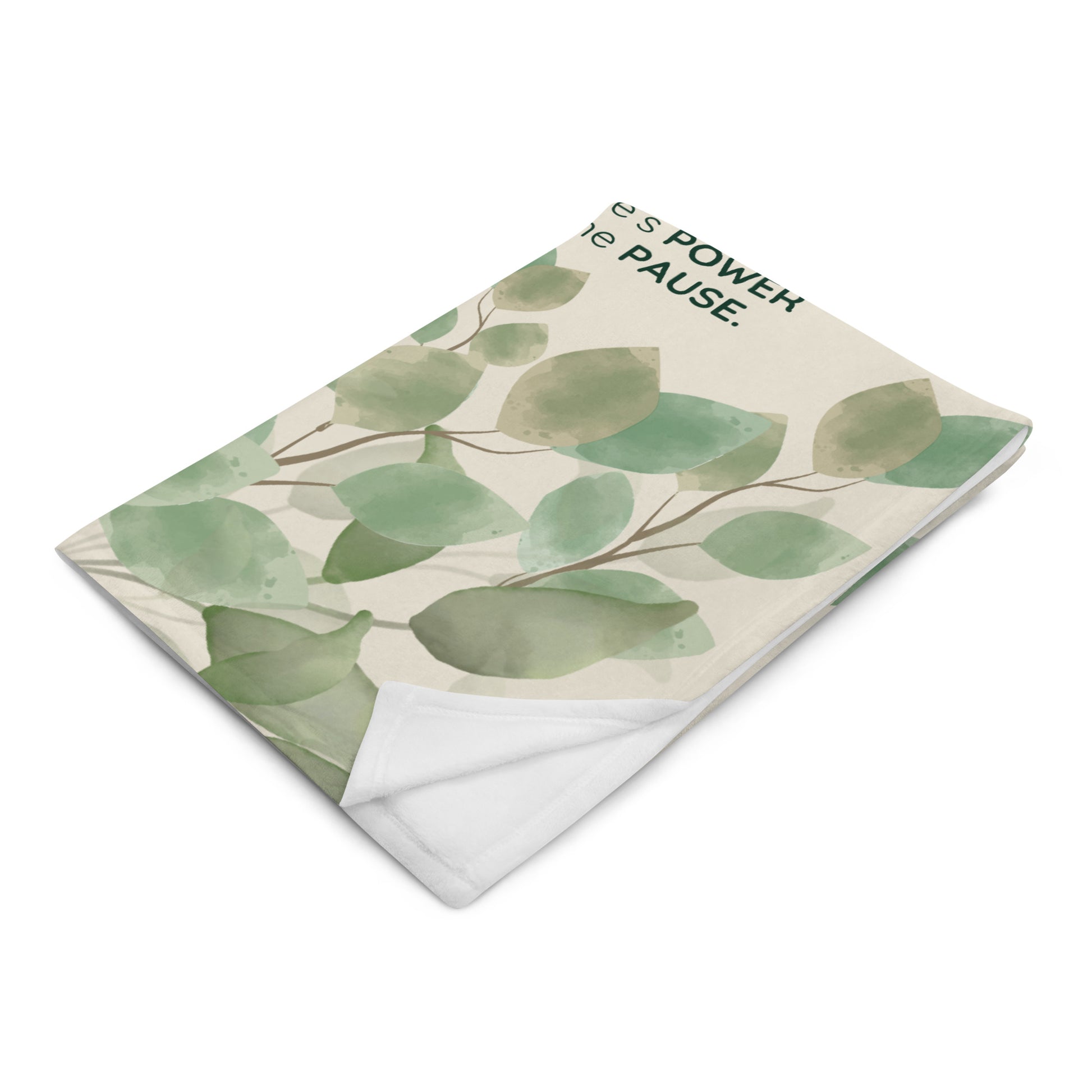 Bring tranquility and empowerment into your home with the Power Pause Throw Blanket. Featuring the inspiring quote “Rest Now. Conquer Later. There’s Power in the Pause.”, this cozy blanket serves as a reminder that strength is found in stillness. The calming leaf design makes it both stylish and soothing for any living space.