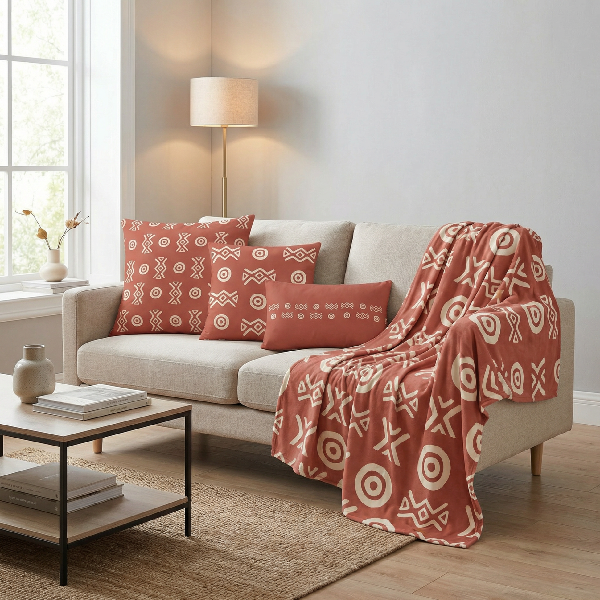 Savanna Earth Throw Blanket – Afro-Modern Tribal Print Cozy Decor