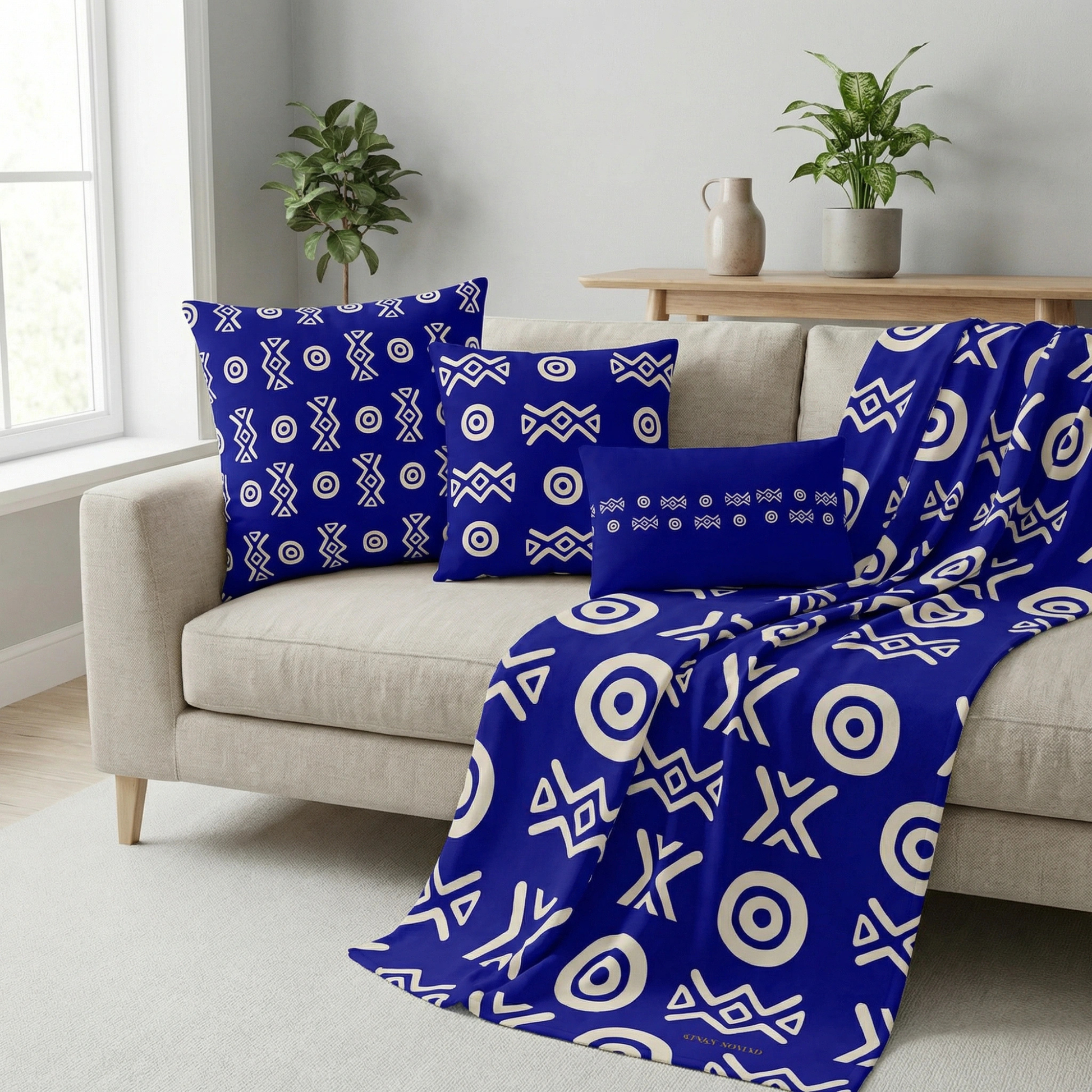 The Savanna Indigo Throw Blanket brings bold pattern and rich color to your space—designed to layer beautifully over sofas, beds, and reading chairs while adding warmth without weight.