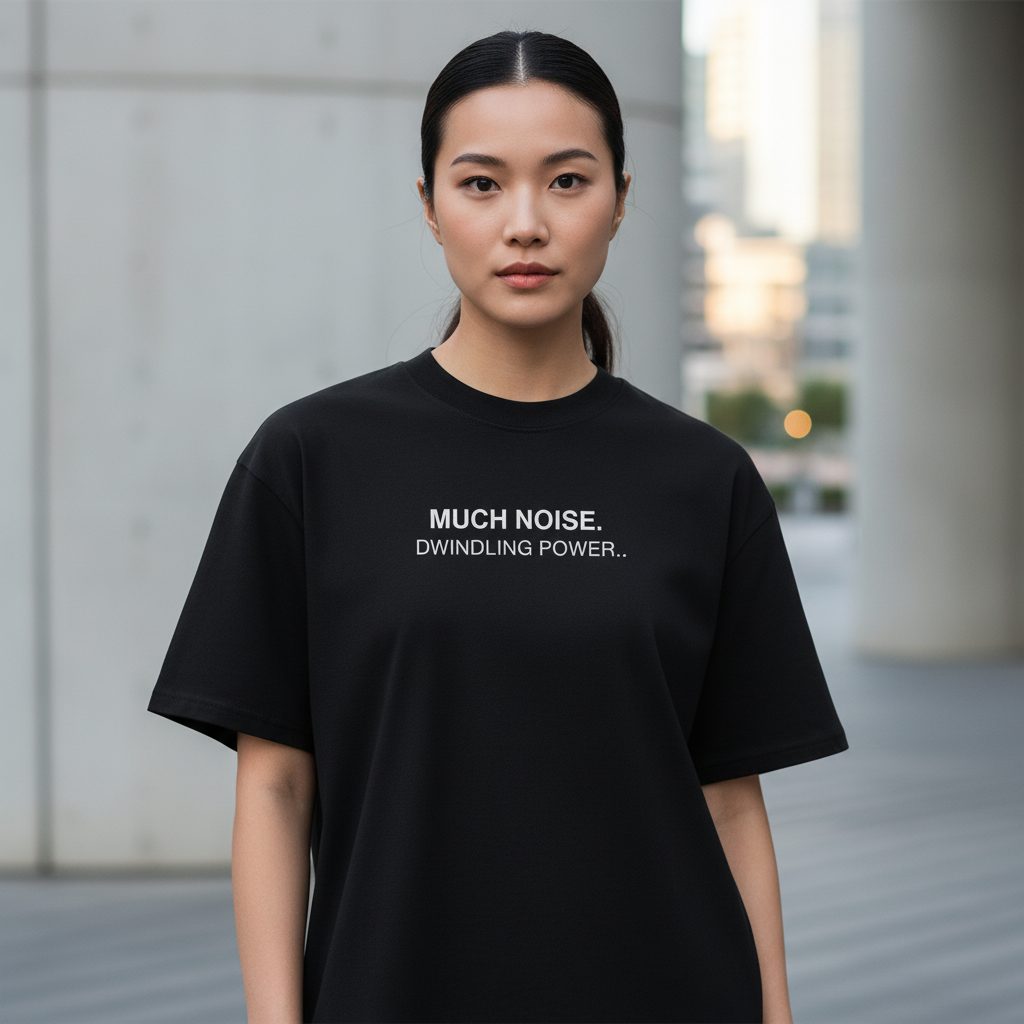 A statement for the times. This oversized organic tee speaks to the illusion of control, the performance of authority, and the quiet shift of real power.