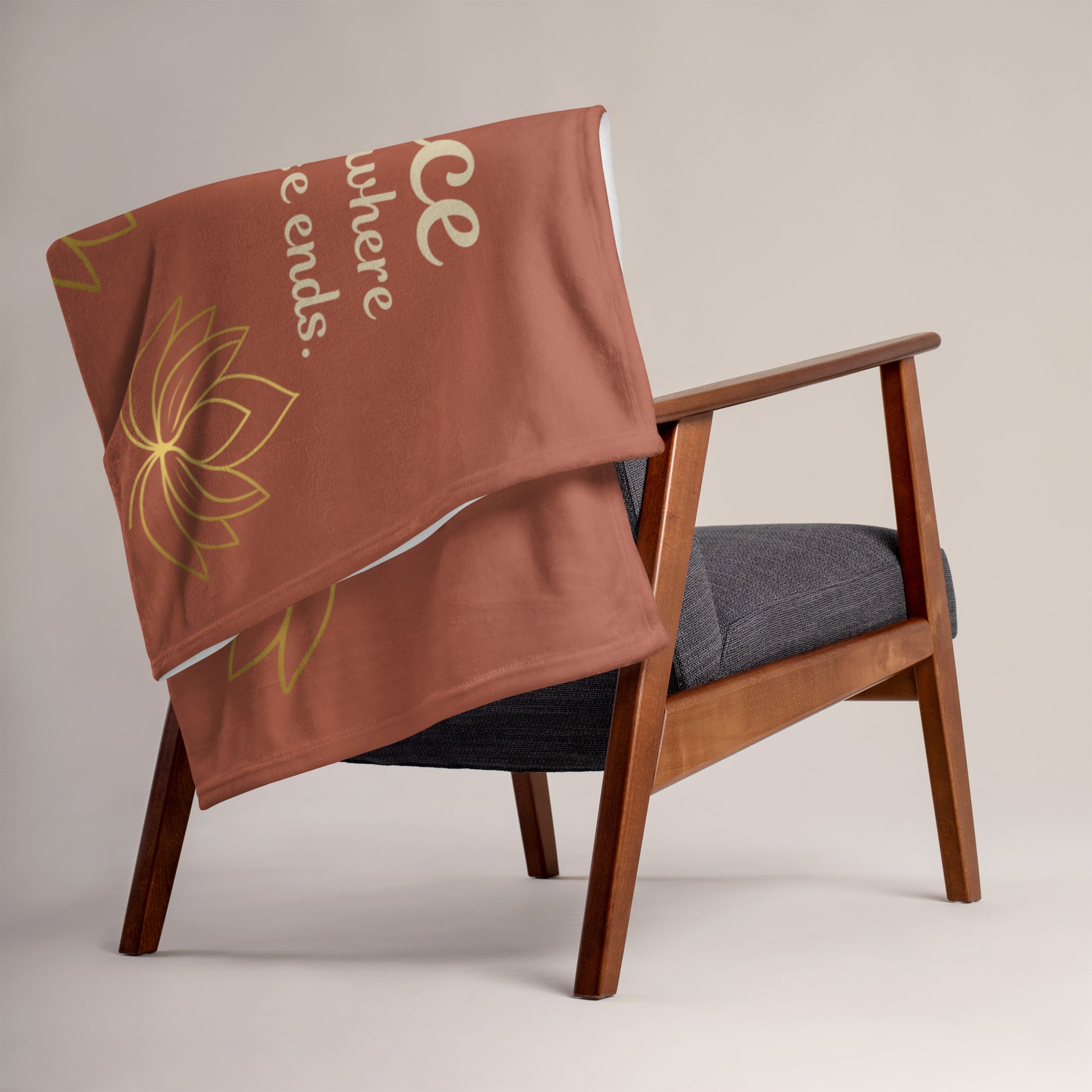 Where Peace Begins Throw Blanket – Inspirational Quote Lotus Design