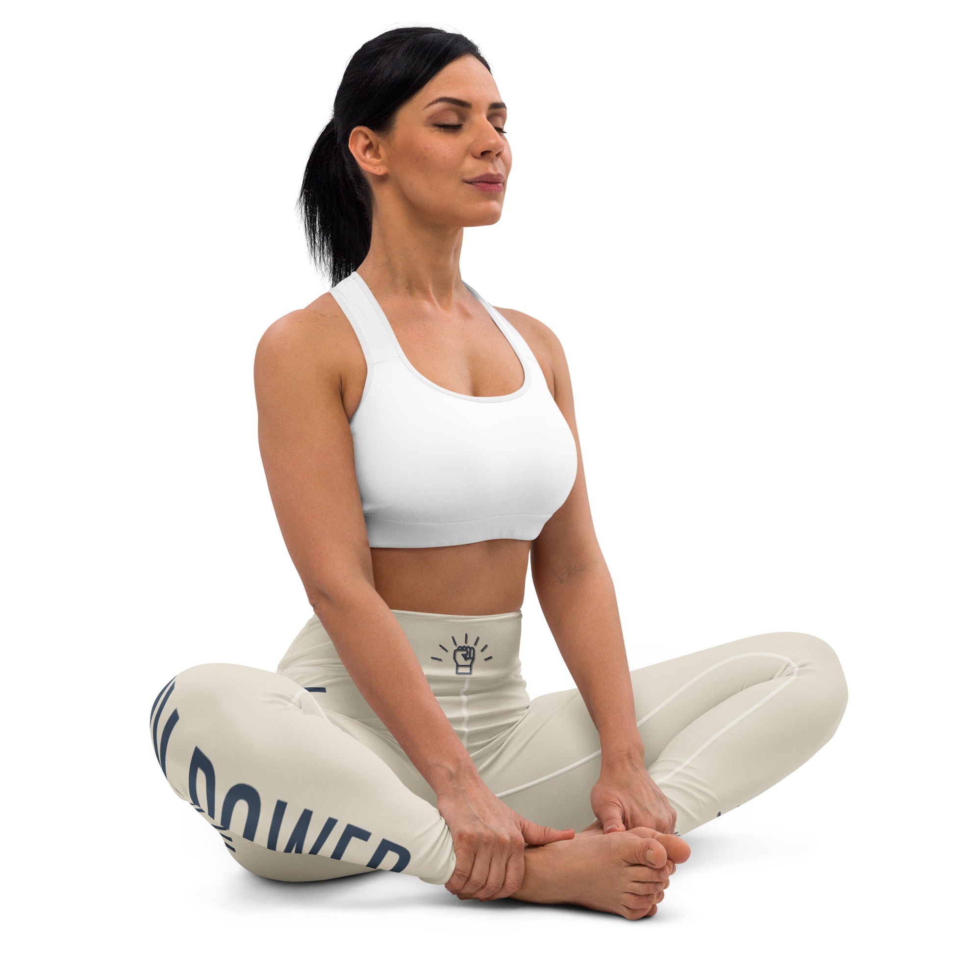 I Stand In My Power Yoga Leggings | High-Waisted Sustainable Activewear | White Chocolate